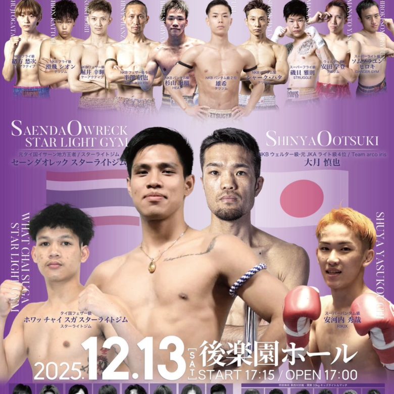 2025年11月24日 / 最終更新日時 : 2025年11月27日 ケーアクティブ ニュース 【11-2お知らせ】12月13日(土)NKB興行 ープロ興行ー と休館のお知らせ 日時・場所 ケーアクティブ出場選手 堀井幸輝 緒方愁次 早川曜平 以上3名が出場します。 応援、よろしくお願いします。 休館のお知らせ 12月13日(土)は試合のため休館となります。 お間違えの無いよう、ご理解ご協力の […]